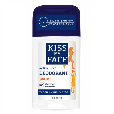 Kiss My Face 액티브 라이프 스틱 데오도란트로 신선함을 유지하십시오. 이 스포츠 향 공식은 화이트 마크가 없으며 다음과 같습니다.