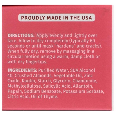 정제수, SDA 알코올 40, 분쇄 아몬드, 식물성 오일, 산화 아연, 카올린, 전분, 글리세린, 카모마일, 메틸 셀룰로오스, 살리실산, 알란토인, 파파인, 칼륨 소르 베이트, 벤조산 나트륨 및 시트르산, 타임 오일.